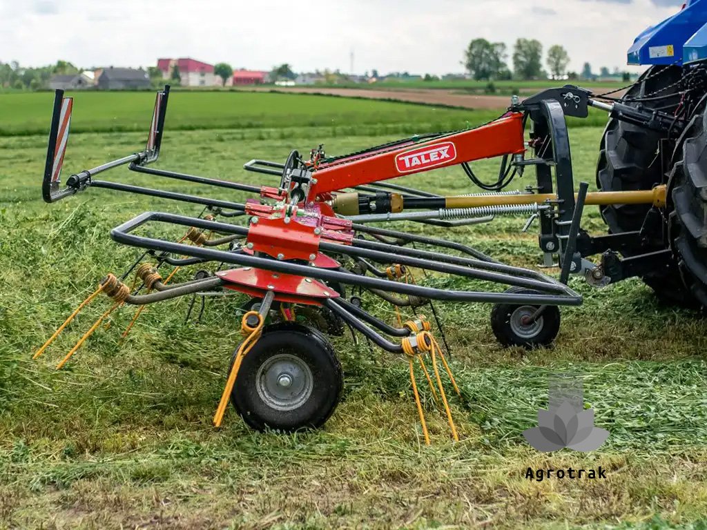 Obracač krmovín TORNADO je 4-rotorový stroj navrhnutý na efektívne obracanie siláže a sena, ktorý urýchľuje proces sušenia a znižuje straty živín. V ponuke je verzia s tiahlom a TBZ. Radlice sú vyrobené z pružinovej ocele s priemerom 10 mm. Hydraulický systém ovláda plynulo a synchrónne nastavenie stroja do pracovnej polohy. Celý systém je ovládaný jednou sekciou. Pružinové tlmiče stabilizujú stroj počas práce. Mechanický prepravný zámok je namontovaný na dvoch ramenách. Kryt prevodovky zabraňuje nadmernému navíjaniu trávy počas práce. Kolesá s nastaviteľným uhlom umožňujú prácu stroja na svahoch. Výstražné značky zabezpečujú bezpečnosť pri preprave stroja.